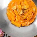 Rosé: Pronounced as 'rowzay', is a popular fusion creamy spicy Topokki with smoked chicken sausage. Choose your choice of noodle. Includes Pickle. Add-on either Donkas or Fishkas.