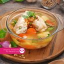 Sup ayam yang jernih, beraroma, disajikan dengan hirisan daging ayam lembut & rempah ratus pilihan