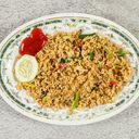 Traditional Malaysian fried rice dish cooked with shallots, garlic, chili, anchovies, and vegetables