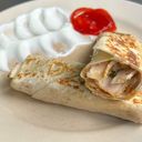 Savory, marinated chicken wrapped in soft pita with fresh vegetables and a drizzle of garlic sauce, embodying the essence of classic Shawarma
