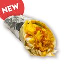 10” tortilla wrap with scrambled egg, chicken slice, coleslaw, corn salsa, veggie, garlic sauce, cheese sauce. *No custom changes available, photo for illustration only.