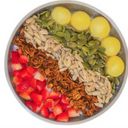 Black rice, chicken sliced, Korean seaweed, Japanese cucumber, fried shallots, sesame seed, spring onion & cheddar cheese served with mentaiko mayo