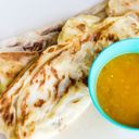Delicious roti canai prepared with lightly beaten egg encased inside