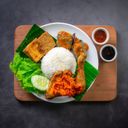 "Nasi, Ayam, Tauhu Tempe Goreng, Timun, Salad, Balado Terung, Sambal Belacan &Kicap" *WAITING TIME 10 TO 15 MINUTE