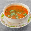 With thicker Tom Yam soup mixed with vegetables and chicken.