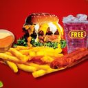 ZINGER CRISPY BURGER, CHEEZY FRIES, 2PCS SAUSAGE AND FREE DRINK