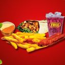 TWISTER ZINGER CRISPY, CHEEZY FRIES, 2 PCS SAUSAGE AND FREE DRINK