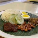 Nasi Lemak dengan sambal bilis, telur goreng dan ayam goreng
