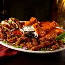 Loaded Potato Skins, Fried Mozzarella, Buffalo Wings. Served with sour cream & green onions, marinara sauce, celery sticks and Ranch dressing.