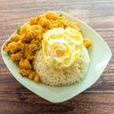 Comes with white rice , chicken chop with thai chilli and fried egg