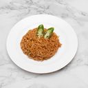 Stir-fried noodles with cooked with chili,onions, garlic and soy sauce