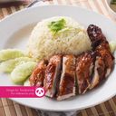 Roasted chicken served with fragrant rice and savory flavor. For reference only.