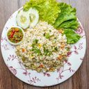 Traditional Malaysian fried rice dish cooked with shallots, garlic, chili, anchovies, and vegetables