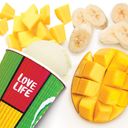 Mango, banana, mango nectar, probiotic vanilla yoghurt & ice