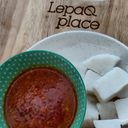 Nasi impit, kuah lodeh, sambal kacang dan sambal paru belado crispy