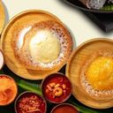 Crispy lentil crepe filled with spiced eggs, served with tangy chutney and sambar.