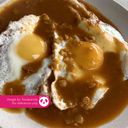 Flaky bread with a savory filling of egg and onion. For reference only.