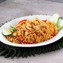 "Thailand's signature fried rice with pineapple, chicken fillets, crabsticks, thai garlic & garnished with sping onions."