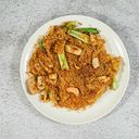 Stir-fried rice vermicelli with vegetables and choice of protein, seasoned with savory soy sauce.