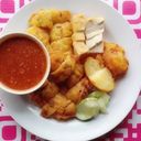 Cucur 1 + Tauhu 1 + Udang Analog 1 + Telur Goreng 1 + Ubi Kentang 1 & Timun **(Jika ada benda habis akan diganti dengan bahan lain). Cucur Udang kami menggunakan resepi dimakan bersama kuah kacang.