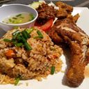 Stir-fried rice cooked with Thai basil, chili, garlic, shallots, chicken