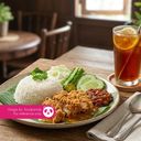 Nasi, lauk, sambal, telur masin & ulam. Include teh o ais