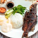 Setiap set dihidang dengan 2 set nasi putih beras wangi, sambal tomat bali, sambal cili kecap bali dan ulam.(for 2 pax) (Size of the fish 500g-700g)