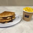 Crispy waffle drizzled with rich Biscoff spread, topped with whipped cream and caramel drizzle.