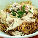 Savory noodles tossed in a rich, aromatic broth, topped with tender chicken and fresh vegetables.