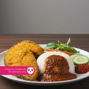 Nasi putih, patin goreng kunyit, kuah, ulam & sambal