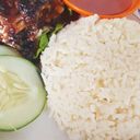 Fragrant coconut rice served with spicy sambal, crispy anchovies, peanuts, and a boiled egg.