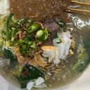Clear broth noodles: tender, flavorful, with assorted meats, greens, and aromatic herbs