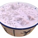 Coconut jelly dessert with chewy pearls, served chilled for a refreshing treat.