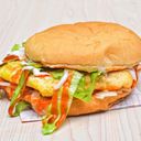 Double grilled chicken patty wrapped in egg, fresh veggies, creamy sauce, nestled in a soft bun