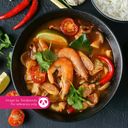 Spicy shrimp soup infused with aromatic herbs, zesty lime, and a hint of chili heat.