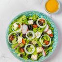 Crisp lettuce, tomatoes, cucumbers, red radish, olives & feta cheese
