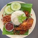 NASI LEMAK BASMATHI KUKUS DIGORENG DENGAN SAMBAL MALAYA + AYAM GORENG BEREMPAH + SAMBAL TUMIS + KACANG