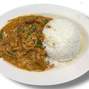 Tender boneless chicken in spicy sauce served over rice; satisfying heat and comfort