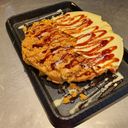 Savory chicken floss and melted cheese atop a crispy waffle, drizzled with tangy mayo BBQ sauce.