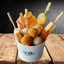 Fish cake, chicken slice, 3 pcs white fish balls, 3 pcs cheese fish balls, fish soy, cheese tofu & seafood tofu