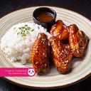 Main dish of rice accompanied by 2 pcs of flavorful roasted chicken wings