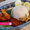 Nasi Lemak, Sambal, kacang, timun, Ayam Goreng (Asorted)