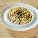 Mushroom, chicken slice, onion, cream sauce with oregano and parmesan