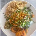 Berniaga tlg la jujur n ikls. Mknan paling teruk pnh order. Dpt ayam grg yg keras sgt mcm dh berhari2 dipanaskan. Tempe hangit, salad x fresh. Timun pn warna kuning lebam. Memang last order sini.