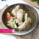 Aromatic chicken soup infused with herbs, spices, and fresh vegetables for a comforting experience.