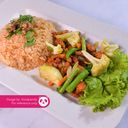 nasi goreng cina cuma ada telur je xda sayur langsung. tomyam seafood cuma ada 2 ekor udang n sotong hiris nipis mcm bawang holand tu. rasa tomyam hauk. nasi goreng usa tu dia guna nasi goreng cina je