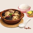 A nourishing chicken broth with mushrooms, chunky chicken pieces, black fungus, and red dates. Served with steam rice