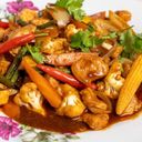 Spicy chicken cooked with carrots, long beans and cauliflower