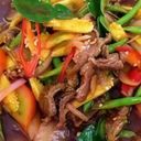 Stir-fried rice with sweet and spicy beef cooked with aromatic lemongrass and lime leaf