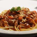 Spaghetti in tomato sauce, minced meat, celery, and carrots